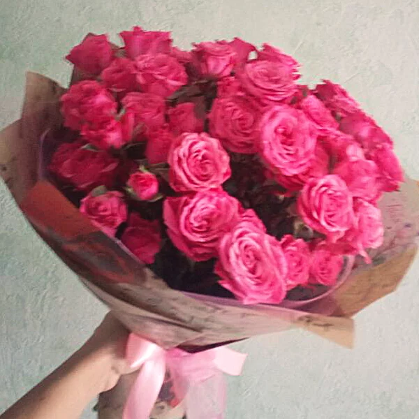Артём / г. Наро-Фоминск г. / 26.04.2025Оценка букета:Оформил вчера вечером заказ на кустовые розы 25 шт, мне перезвонили из салона и сообщили, что в таком количестве роз этого цвета уже нет. Немного огорчился, но флорист предложил рассмотреть варианты по замене на микс нескольких видов роз. Так как мне было непонятно, как это будет смотреться, мне прислали несколько вариантов букетов на выбор и, надо сказать, вполне неплохих! В итоге выбрал букет как и предложил флорист из розовых, белых и малиновых кустовых роз- как раз в таком сочетании 25 роз получилось сделать. Очень рад доставке. Спасибо, букет привезли роскошный!
