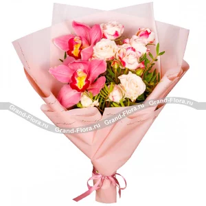 Жанна / г. Изобильный г. / 12.04.2025Оценка букета:Получил великолепный букет с розовыми розами, гвоздиками и кустовыми розочками! Композиция получилась нежной и романтичной благодаря сочетанию этих цветов. Декор добавил букету особого шика. Все выполнено на высшем уровне!